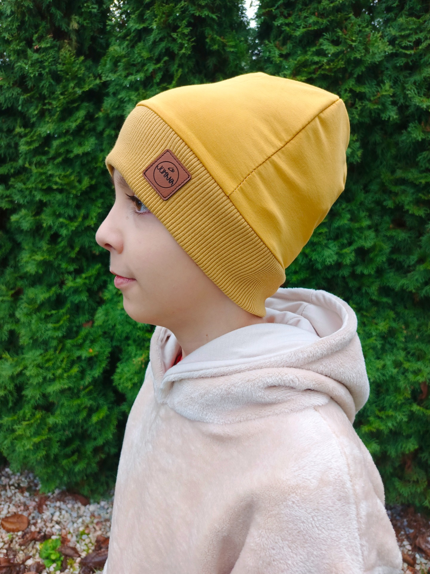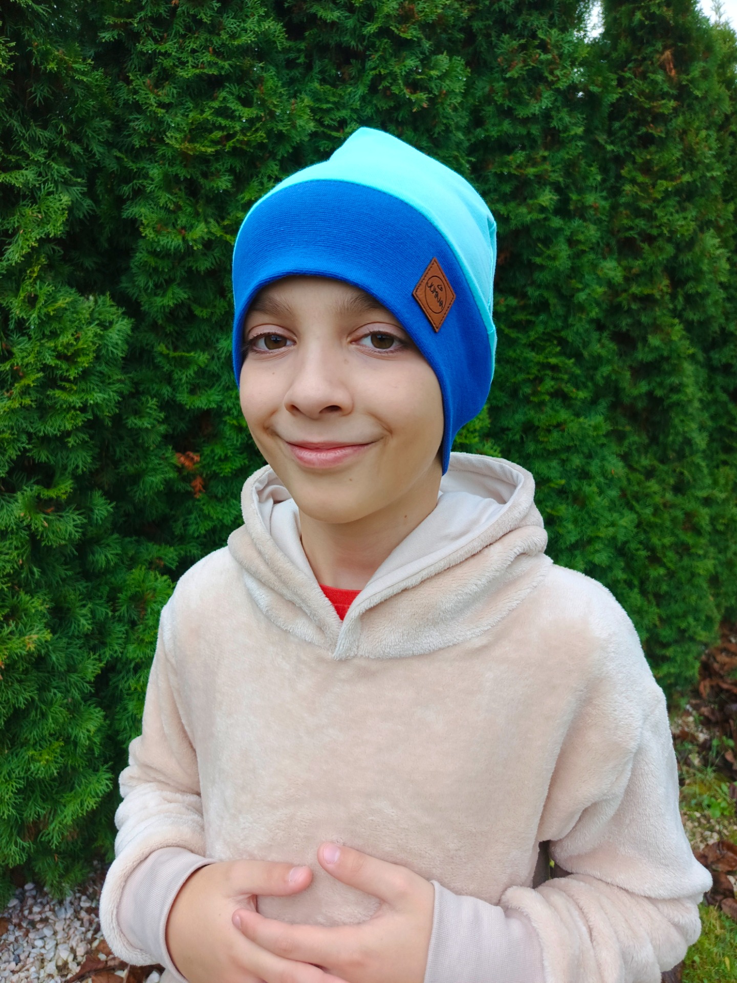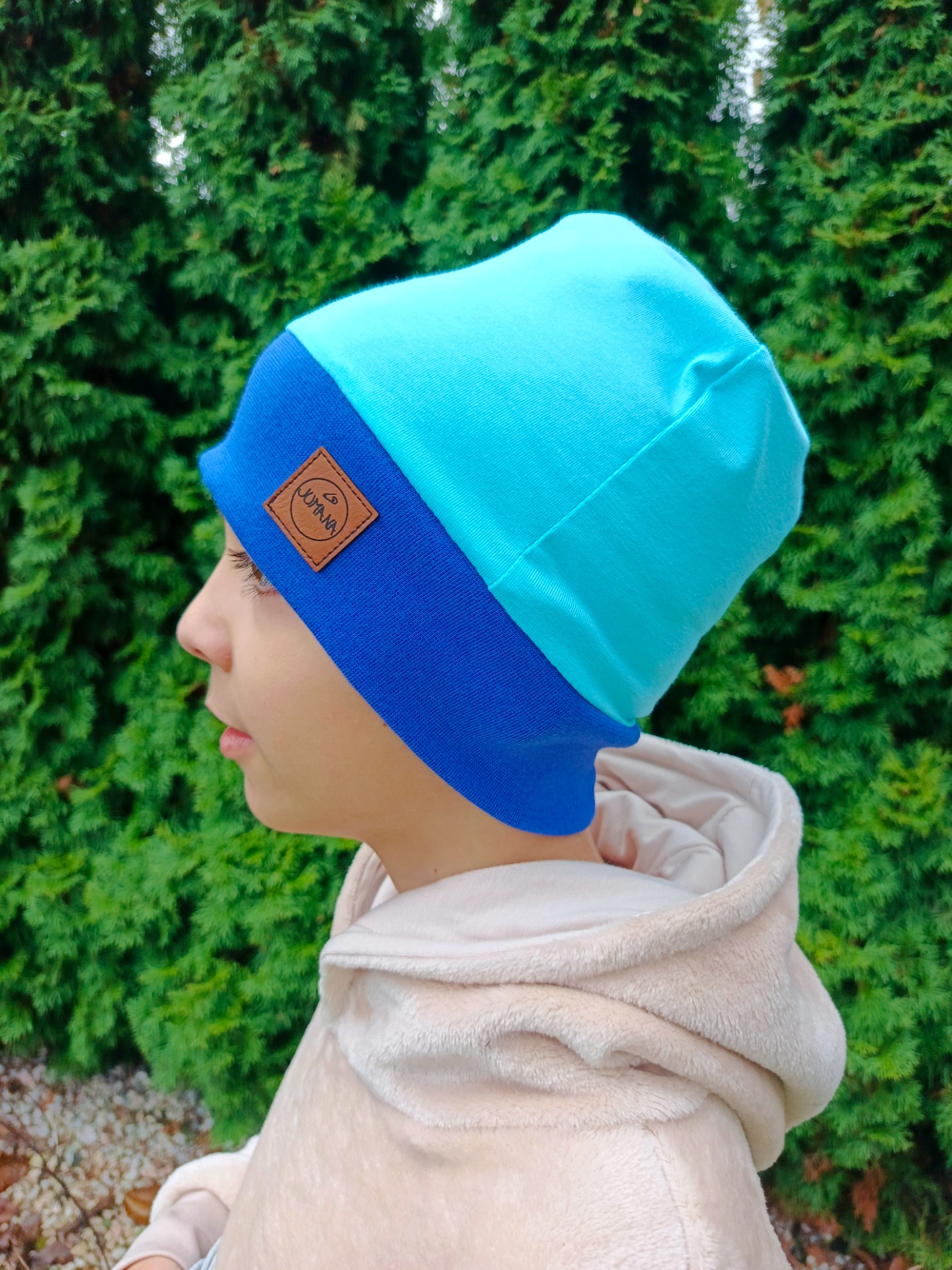 Jednovrstvá čepice šita z úpletu, nebo teplákoviny