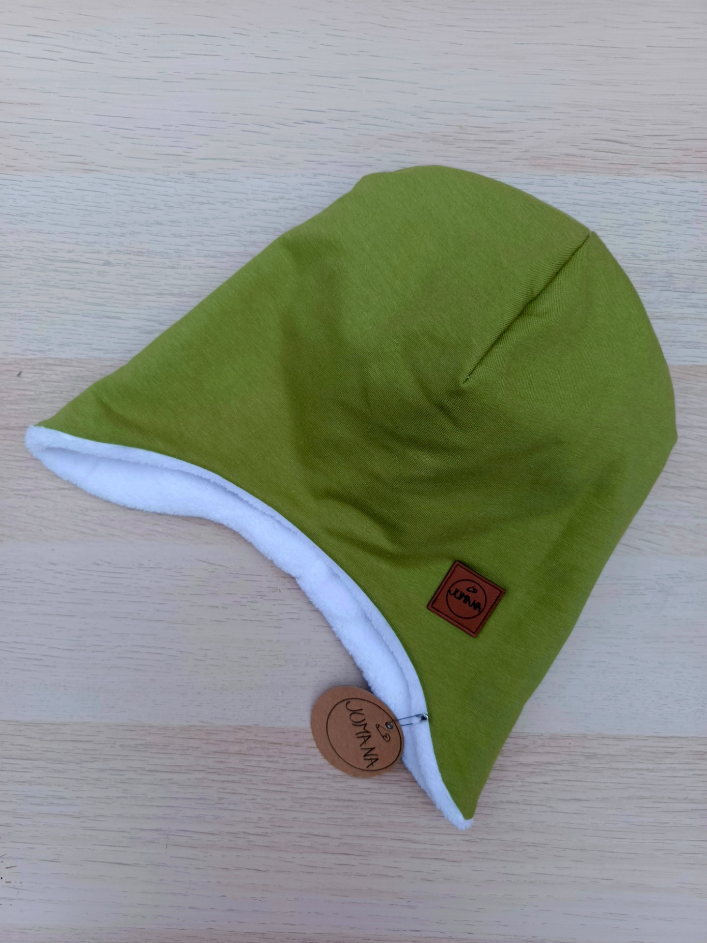 Čepice vyrobená ze zatepleného úpletu a bavlněného fleecu. Fleece je velmi příjemný na dotek a hřejivý.