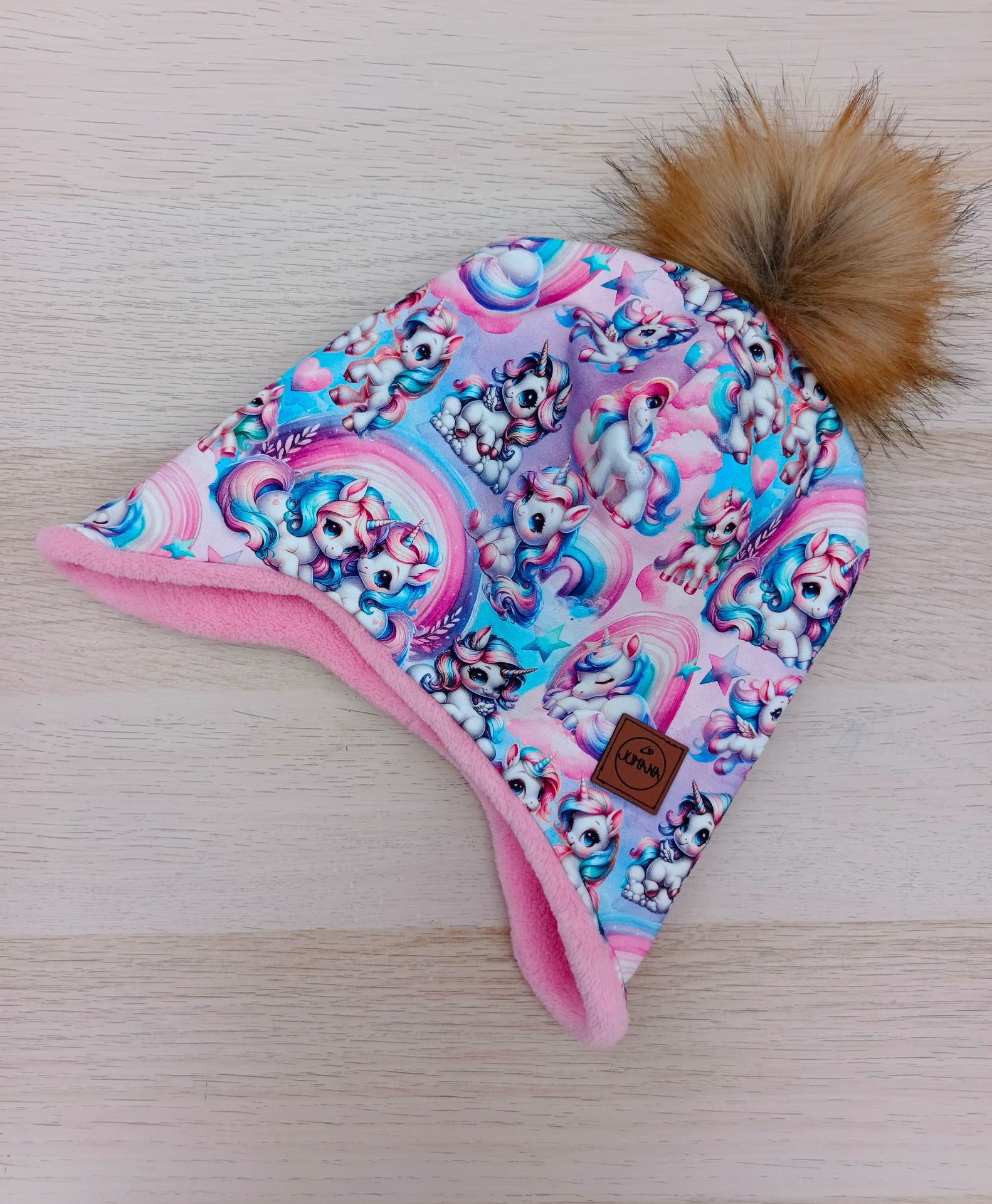 Čepice vyrobená z teplákoviny, či úpletu a bavlněného fleecu. Fleece je velmi příjemný na dotek a hřejivý. Lze ušít s bambulí i bez bambule.