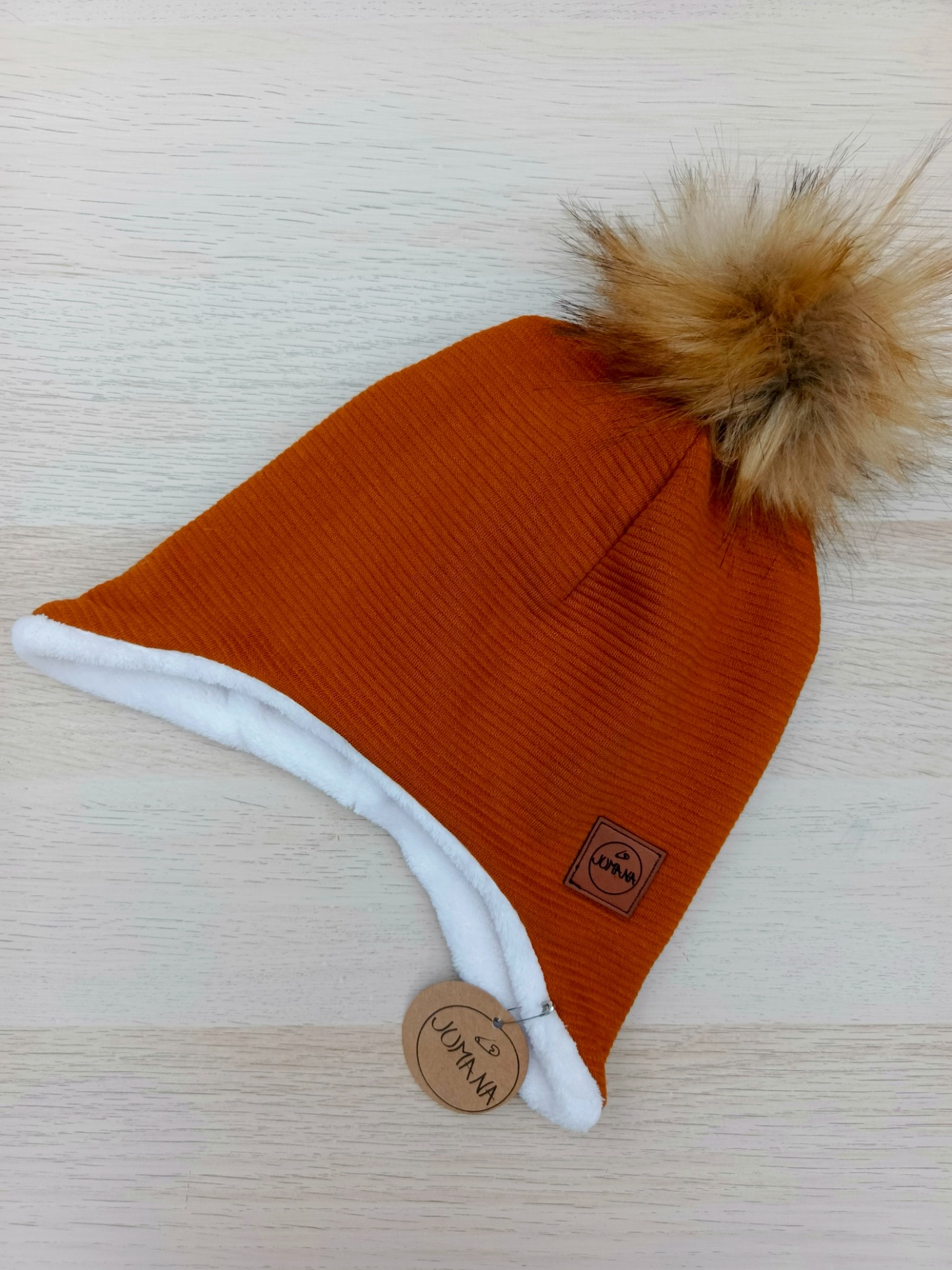 Čepice vyrobená z vysokogramážního úpletu a bavlněného fleecu. Fleece je velmi příjemný na dotek a hřejivý. Bambule je připevněna gumičkou, která je navléknuta na knoflík, který je přišitý k čepici. Při praní lze bambuli sundat, tím prodlužujete její životnost. Možnost vyměnit za jinou barvu.
