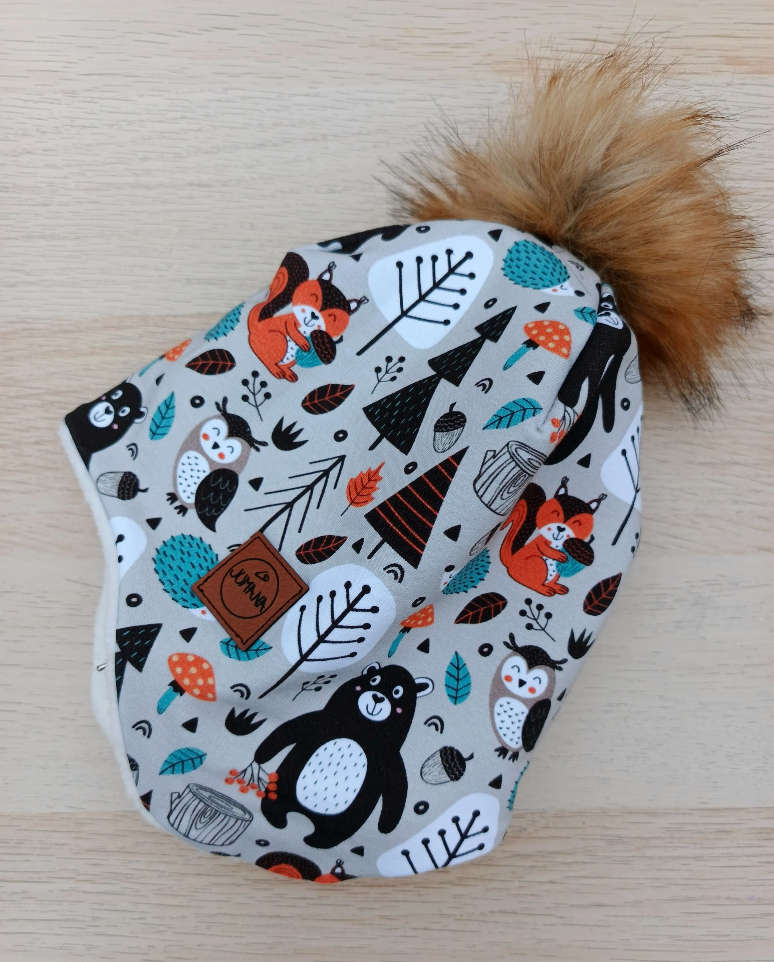 Ušanka s bambulí - Lesní zvířátka - velikost 49 - 51 cm